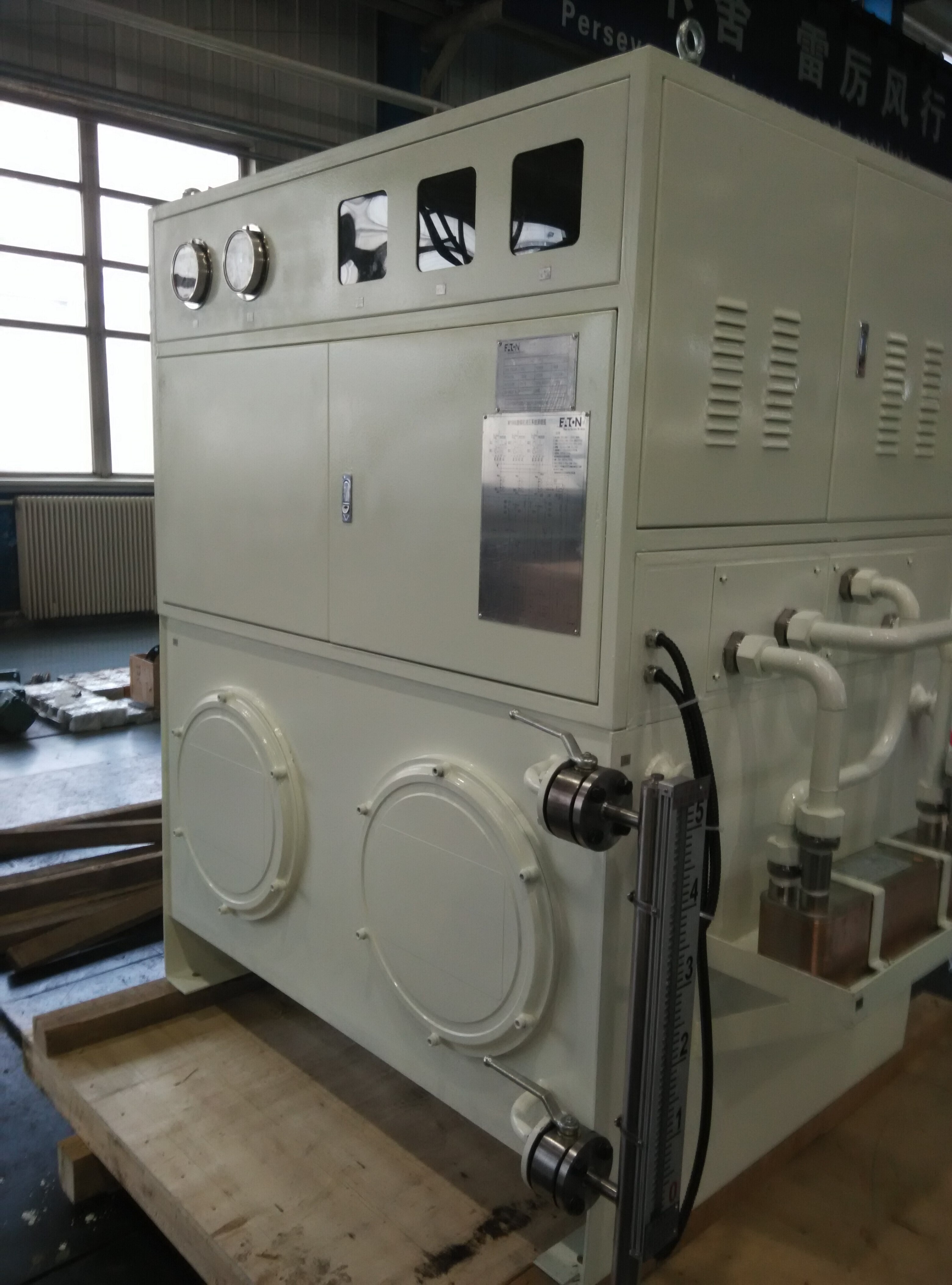 我公司生產(chǎn)的中速磨煤機(jī)液壓系統(tǒng)可實(shí)現(xiàn)磨煤機(jī)的變加載,加載力與磨煤機(jī)的給煤量匹配。由于在該系統(tǒng)中采用了比例控制技術(shù),實(shí)現(xiàn)了無級(jí)調(diào)壓,瞬間抬輥和落輥,減少磨盤震動(dòng),使得磨煤機(jī)出煤的顆粒更加均勻,節(jié)省能量,提高了磨煤機(jī)的工作效率。保證了產(chǎn)品的性能,滿足了不同客戶的需求,伴隨著我國電力和世界電力事業(yè)的發(fā)展,我公司生產(chǎn)的中速磨煤機(jī)液壓系統(tǒng),已遍布國內(nèi)各大電廠及化工企業(yè),部分產(chǎn)品已出口到國外。2014年為美國伊頓公司生產(chǎn)的磨煤機(jī)液壓及潤滑系統(tǒng),其質(zhì)量達(dá)到國際同類產(chǎn)品水平。