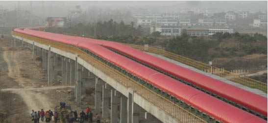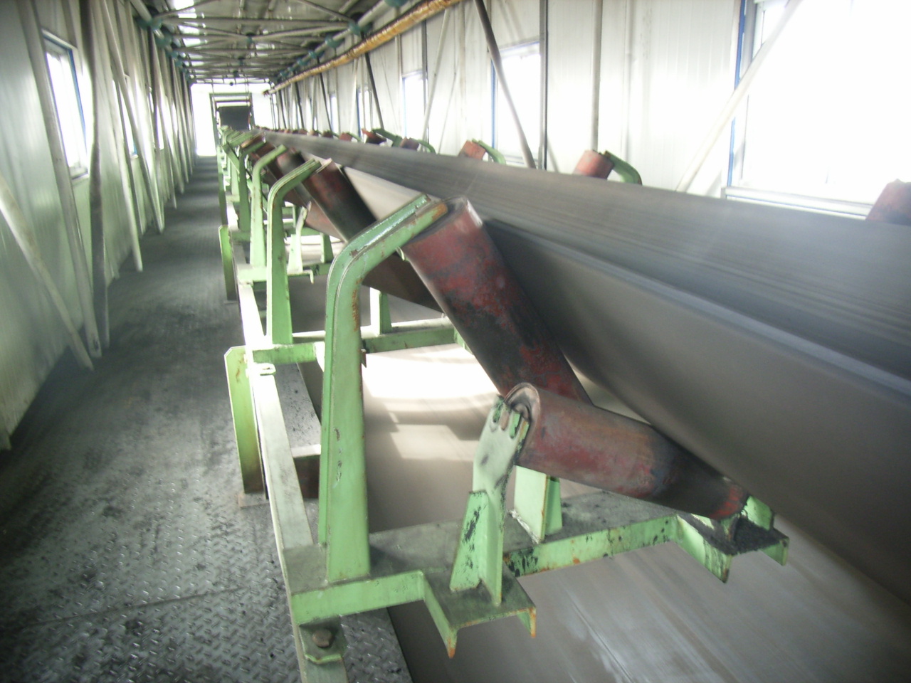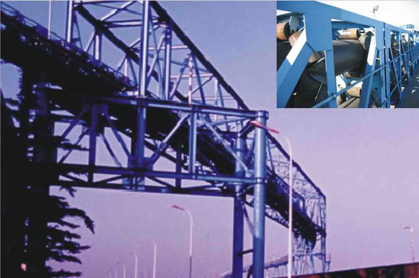 我公司所生產的帶式輸送機,首先是運行可靠,在許多需要連續(xù)運行的重要的生產單位,如發(fā)電廠煤的輸送,鋼鐵廠和水泥廠散狀物料的輸送,以及港口內船舶裝卸等均采用帶式輸送機。其特點動力消耗低,使用過程中阻力小,對貨物的磨損和破壞均小,生產效率高。不僅在煤廠、鋼鐵廠和礦廠運用輸送機,還在小型隧道內均可以使用,長度短則幾米,長可達10米以上,也可以架設在地面交通混亂和危險地區(qū)的上空。如在一點或多點受料.也可以向多點或幾個區(qū)段卸料,需要時,還能把各堆不同的物料進行混合。